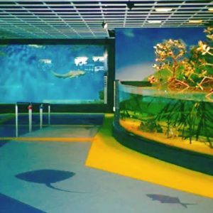 大水槽の中をサメやエイが泳いでいる姿は癒されると思いますよ。